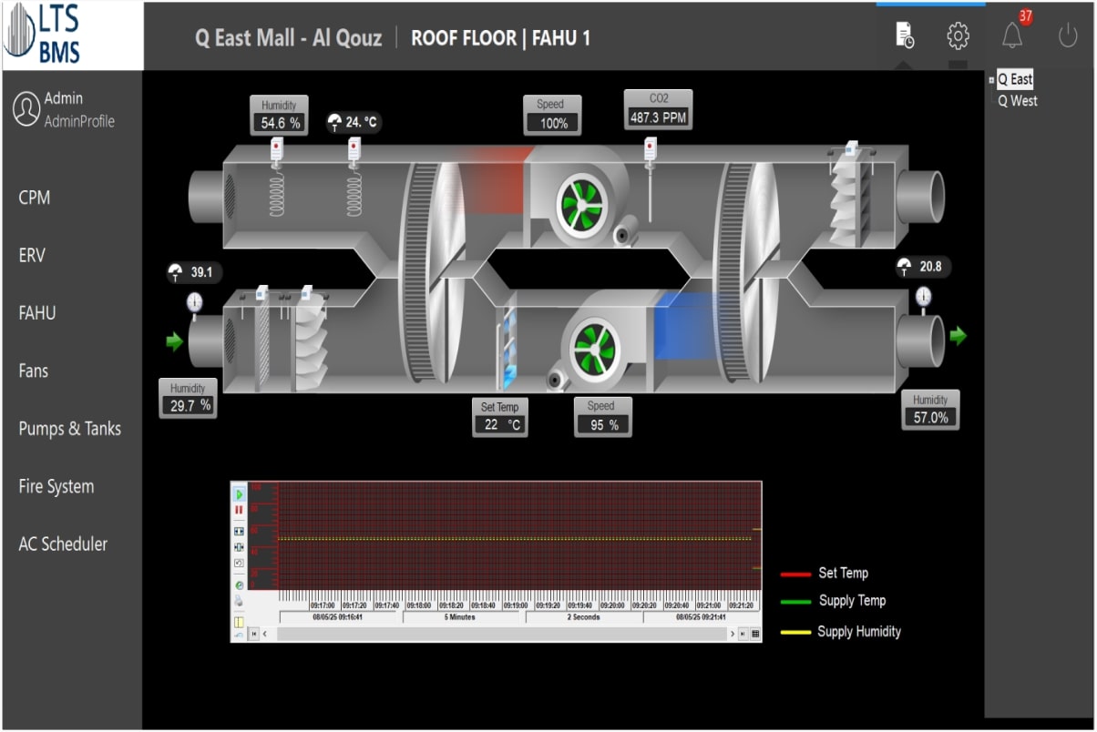 Transform your building into a smart, efficient, and sustainable space with our advanced Building Management System. Designed to integrate all critical building services, our BMS gives you complete control and real-time visibility from a single platform. From HVAC and lighting to energy, safety, and security systems, everything is seamlessly connected, ensuring comfort for occupants and optimized performance for operators. With built-in analytics, automation, and energy-saving strategies, our BMS reduces operational costs while enhancing building reliability and safety. Key Benefits: Smart Comfort – Automated control of HVAC and indoor climate, Energy Efficiency – Reduce energy bills with intelligent monitoring, Safety & Security – Integrated fire, access, and alarm systems, Real-Time Insights – Data-driven decisions through advanced reporting, Sustainability – Lower carbon footprint and support green initiatives.